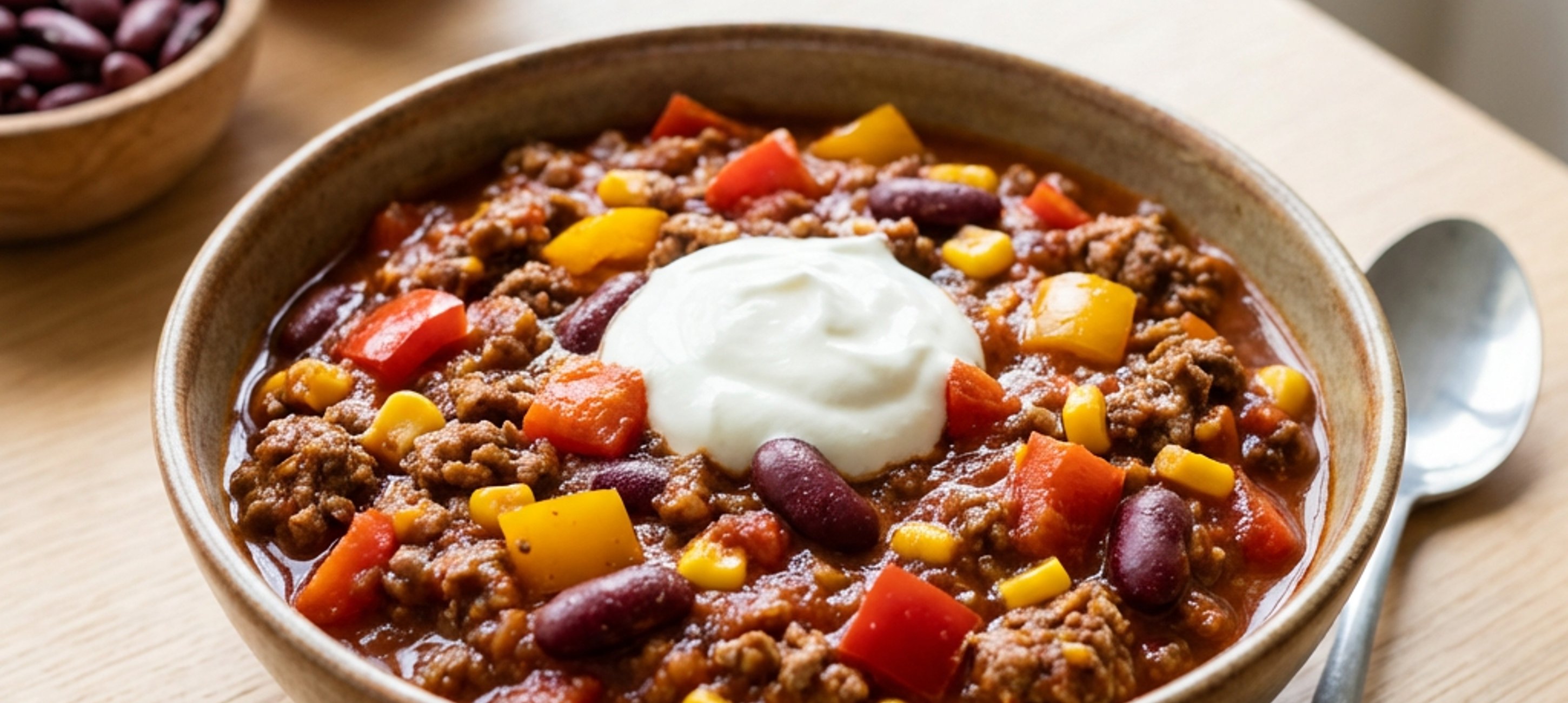 - 2Meanwhile, finely dice the bell peppers and add them, along with the corn and kidney beans, to the browned minced meat and fry briefly. Then deglaze everything with the strained tomatoes and season mildly again – according to taste. Let the kids' chili simmer for about 20 to 30 minutes so that the beans become nice and soft.