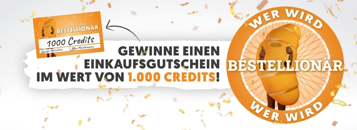 Solltest du mit deiner Bestellung die magische Zahl knacken, dann gewinnst du einen Gutschein für einen Bestellionär-Party-Einkauf im Wert von 1.000€!