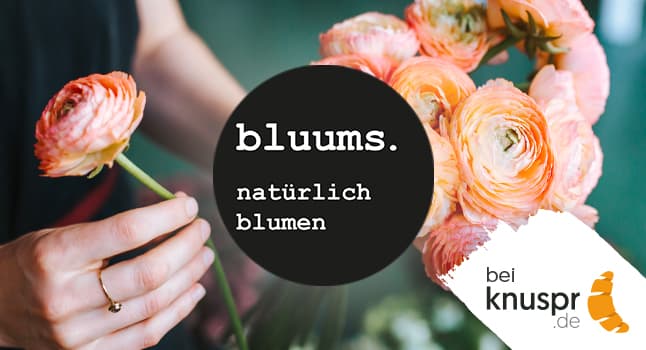 Die Blumensträuße werden in einem von bluums eigens entwickeltem Blumenpapier verpackt, welches optimal eine langanhaltende Frische garantiert. Durch all diese Innovationen floriert das Geschäft von bluums und es gibt mittlerweile zehn Standorte in München, drei weitere Abholstationen in München, Unterhaching und Pullach sowie Geschäfte in Glonn und Weyarn und natürlich gibts ihre tolle Blütenpracht auch bei Knuspr.
