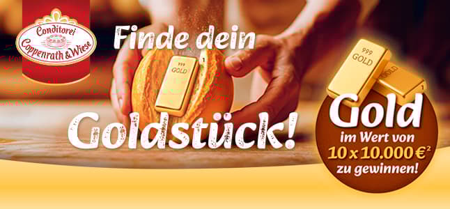 Jetzt mitmachen und Gold im Wert von 10 x 10.000 €² gewinnen: Einen Aktionsbeutel „Unsere Goldstücke“ von Coppenrath & Wiese kaufen und mit etwas Glück 1 von 10 goldenen Stickern im Beutel finden.
