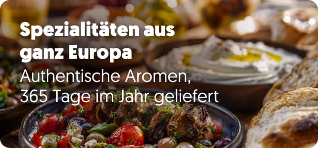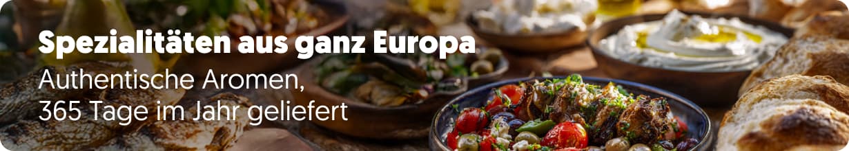 Einmal quer durch Europa, ohne das Haus zu verlassen: Bei uns findest du echte Schätze aus Spanien, Frankreich, Griechenland und Kroatien und direkt zu dir nach Hause in nur einer Stunde geliefert.