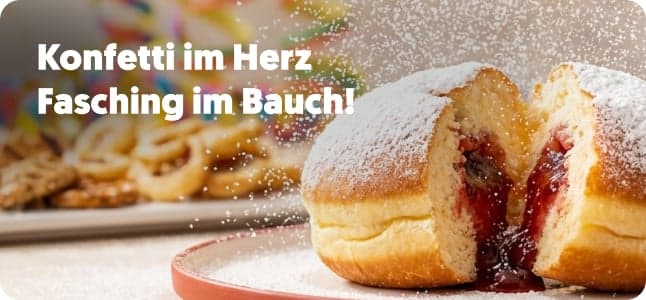 Feier Fasching ohne Stress. Wir liefern dir die besten Krapfen der Stadt, Party-Snacks und alles für dein Katerfrühstück direkt an die Tür. Licht aus, Spot an für die Narrenzeit! Egal, ob du als Superheld, Einhorn oder einfach als Genießer feierst – wir haben das passende Catering für deine Faschingsparty. Bei Knuspr findest du alles, was die fünfte Jahreszeit noch bunter macht: von ofenfrischen Krapfen unserer lokalen Bäcker bis hin zu herzhaften Snacks, die jede Polonaise überstehen. Und weil wir wissen, dass die beste Party manchmal einen harten Morgen danach hat, liefern wir dir die Rettung in Form eines Katerfrühstücks gleich mit. Lehn dich zurück, setz die Maske auf und lass uns das Schleppen übernehmen. Knuspr liefert, du feierst!