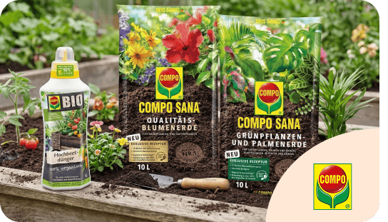 Lass es blühen und wachsen! Mit COMPO erhalten deine Pflanzen genau die Pflege, die sie brauchen. Von hochwertiger Erde bis zum Bio-Dünger für Kräuter, Obst und dein Hochbeet – schaffe dir deine eigene Wohlfühloase auf Balkon oder Garten.