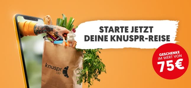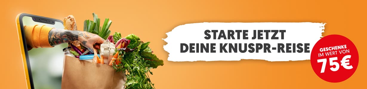 Starte jetzt dein Knuspr-Abenteuer! Sichere dir mit deiner ersten Bestellung eine kostenlose Lieferung und insgesamt 75 € Ersparnis für deine nächsten Einkäufe.