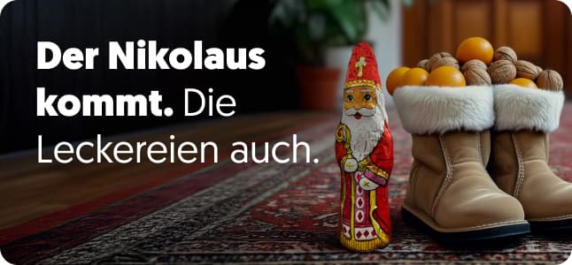 In ein paar Tagen klopfen Nikolaus & Knecht Rupprecht an die Tür. Und du merkst gerade, dass eine halbe Tafel Schokolade nicht für glänzende Kinderaugen reicht? Keine Sorge! Wir retten dich. Wir haben Obst aus Ländern, wo der Winter keine Ahnung hat, Schokolade, die jeden zum Strahlen bringt und Spielzeug, das Kinder freiwillig Dinge gestehen lässt.