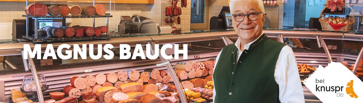 Bereits seit über 65 Jahren stellt die Metzgerei Magnus Bauch feinste bayerische und internationale Fleisch- und Wurstspezialitäten nach altüberlieferten Familienrezepten her. Dazu verwenden sie ausschließlich beste Rohstoffe von regionalen Landwirten und verarbeiten diese mit modernster Produktionstechnik und unter höchsten Qualitätsstandards zu absoluten Spitzenprodukten. Dabei verlieren sie nie ihre Philosophie aus dem Auge: „Weil es uns niemals Wurst ist, was in unserer Wurst ist!“