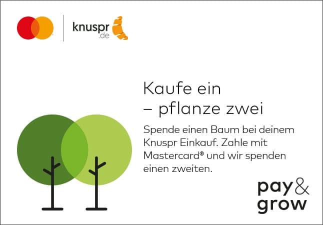 Damit wirken wir dem Klimawandel entgegen und sorgen dafür, dass unser Planet noch lange ein Zuhause für uns Menschen ist. Also werde Teil dieses baumstarken Teams und bestelle jetzt bei Knuspr den ersten Einkauf, der Bäume wachsen lässt!