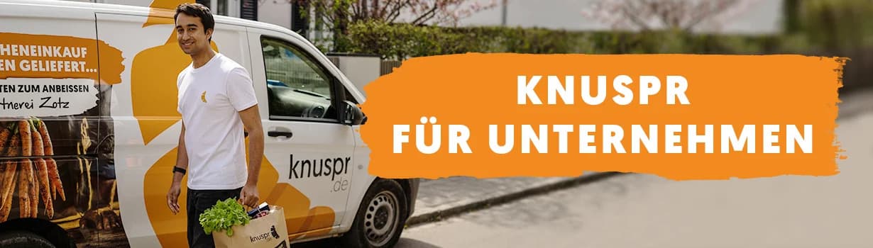 Wir von Knuspr liefern nicht nur den Wocheneinkauf an Privatpersonen, sondern wollen auch für Unternehmen, Arbeitgeber und Arbeitnehmer da sein. Für den wöchentlichen Bedarf an Büro-Snacks, Kaffee und Küchenpapier oder auch für ein gemütliches After-Work-Event oder Teamevents liefern wir alles direkt an den Empfang oder gerne auch Schreibtisch - in 3 Stunden. Und das Pfand nimmt der Knuspr-Bote auch gerne wieder mit.