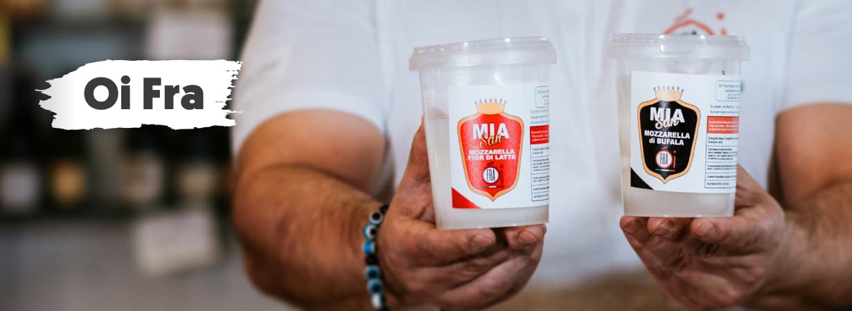 We proudly present: Oi Fra. Discover handmade Mozzarella, delicate Burrata, sweet Caciocavallo and probably Munich's creamiest Ricotta. Every morning, the three Italian friends Agatino, Salvatore, and Kim bring the cheese specialties directly to us – it doesn't get fresher than this!
