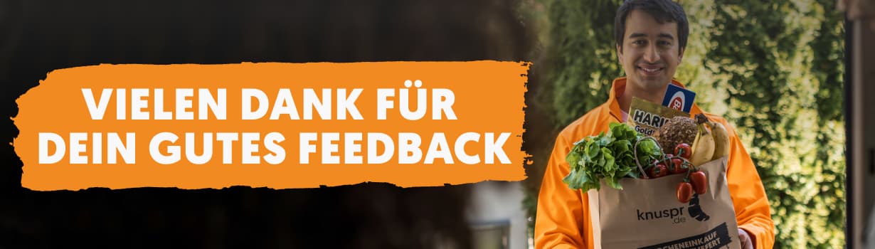 If you would like to provide us with more feedback, you can always contact our customer service. You can reach our customer service team at 089-88 99 75 00 or by email at kunden@knuspr.de.